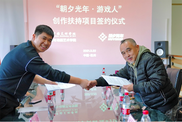2021年3月22日下午,中国美术学院影视与动画艺术学院和北京字节跳动有限公司在中国美术学院象山校区举行了“朝夕光年·游戏人”创作扶持项目签约仪式。影视与动画艺术学院院长苏夏和字节跳动朝夕光年运营负责人苏轼代表双方单位签署了合作协议。
