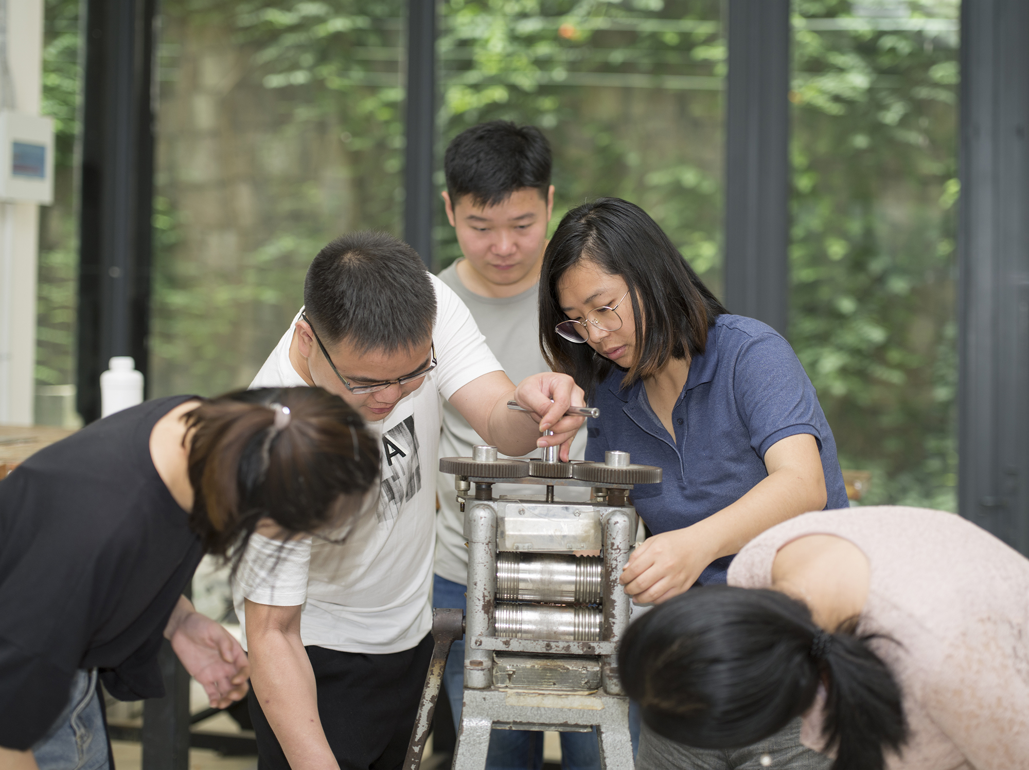 围绕着本次研培的“跨界”主题,此次研培课程在形式上也有所突破和创新:将班级分为“当代青瓷与金工跨界创新创意研修班”和“当代陶瓷与漆艺跨界创新创意研修班”,招收青瓷与陶瓷类传承人20人,金工和大漆类传承人各10人,形成学科跨界式的班级构成;同时改变以往平铺式的课程设置,将一个月的研培时间分为跨界材料认识学习和跨界合作创意实践两个阶段。