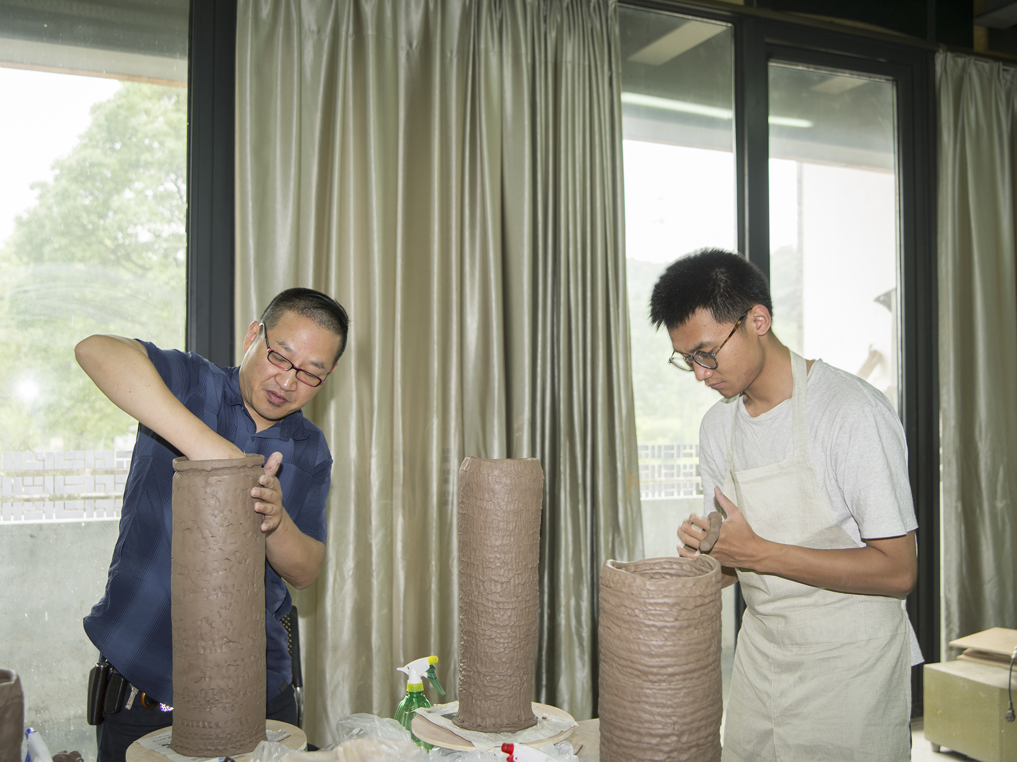 陶瓷艺术系副主任吴昊负责第一阶段陶瓷基础课程的教学工作,他认为此次的创新性课程是一次有意义的尝试,“我们不是要求学员成为跨领域的专家,但也不打算让课程流于一般的纯粹体验,会以完成一件作品为目的来设置课程轴线,让学员在这个过程中,完整地接触陶瓷材料、了解陶瓷工艺。”同时吴昊表示,学员因为来自不同的工艺领域,所以本就对工具和材料有着自己的理解和使用习惯,在实际的课程中,学员会采用一些对于陶瓷来说比较新鲜手法,这对师生双方都是一个打破思维壁垒的好机会。吴昊表示:“这样的课程形式可以让不同领域的思维汇集在一起进行碰撞与交融,能够打破传承人的固有思维,让他们重新领悟创新的内涵。”