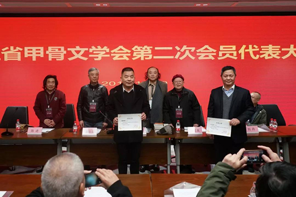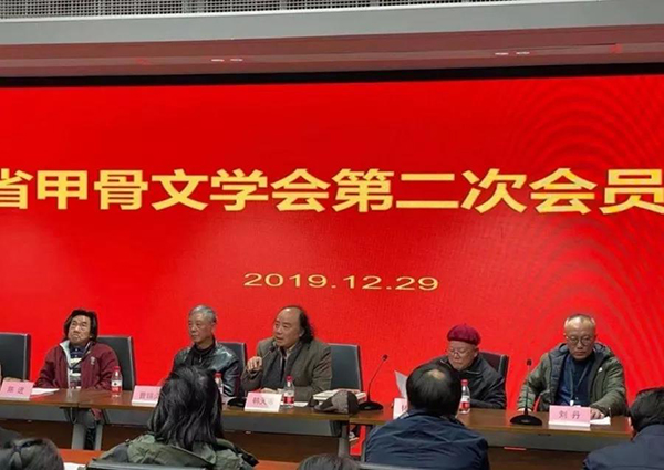 我对今后的工作有以下几点设想:第一是加强学会的组织建设,充实新的骨干力量。分设展览部、理论部、对外交流部以及党组织部。第二是要经常性的做一些甲骨文相关的公益讲座,将甲骨文相关知识向大众宣传讲解。积极响应习主席号召,在新形势下,确保甲骨文等古文字研究有人做、有传承。第三是每年开展一次省内的甲骨文展览,今年我们学会就是组织二十几位作者参加了长三角甲骨文书法篆刻联展。以及围绕王国维、孙诒让、罗振玉等古文字先贤所做相关古文字研究,两年举办一届大型的展览或甲骨文专家研讨会。第四是加强对外文化交流,加强对日本、韩国、马来西新加坡以及华人文化圈的文化传播,促进文明交流互鉴。我们与海外学者的学术交流,也是扩大甲骨文三千多年的文化在海外的传播。