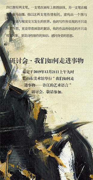 本次展览将于12月22日对公众开放,并持续展出至2月23日。展览期间还将举行「我们如何走进事物——许江的艺术语言」学术研讨会。
