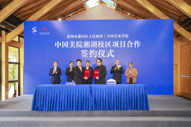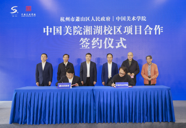 今天(10月14日),在湘湖师范旧址所在的湘湖院士岛,中国美术学院跨江而来,正式签约落户湘湖。