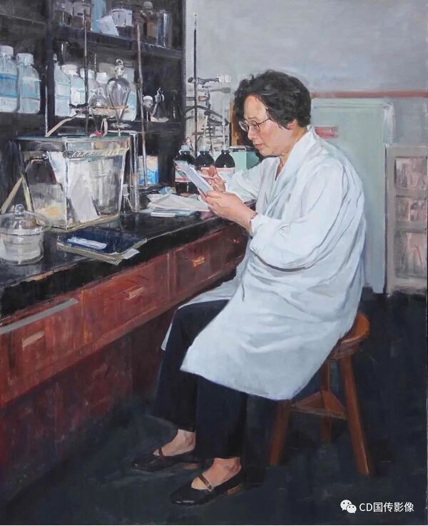 《屠呦呦》,该油画作品来自中国美术学院,创作者刘华新。屠呦呦,中国中医研究院终身研究员兼首席研究员,青蒿素研究开发中心主任,博士生导师、药学家。2015年10月,因发现可以有效降低疟疾患者死亡率的青蒿素,成为首获科学类诺贝尔奖的中国人。作品画面色彩柔和,笔触细腻,描绘了实验桌前阅读实验报告的屠呦呦。明亮的色调表现人物主体,突出科学家专注、严肃的研究态度;运用写实技巧展现了中国科学人百折不挠、踏实奉献的科研精神。