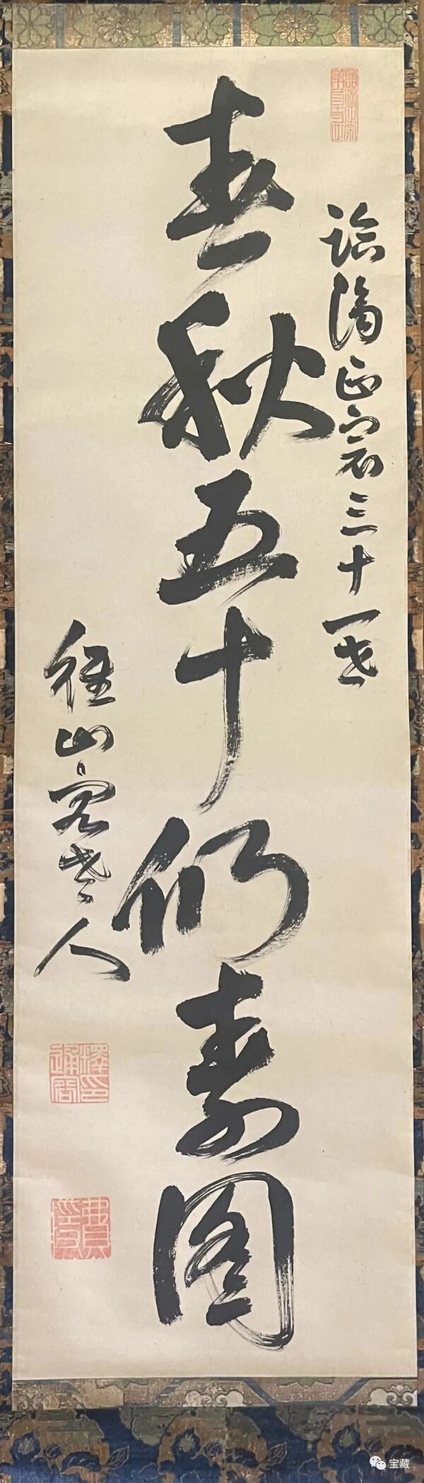 “一休是一位卓越的僧人和艺术家,他的诗、书法和佛学,都有着非常重要的地位。我第一次看到这件作品,就想到了四个字:见字如面。书法最重要的就是要呈现出一个人的书写状态,以及这个人的真性情。而一休禅师的这件作品就会让你感觉仿佛看到了这个人,看到了他那种非常松灵、同时又至情至性的状态,可以想见他当时的生活情景。”高世名介绍,费隐通容则是一位临济宗的大师,与杭州径山寺有关,而他的宗派后来东渡日本,成为日本最重要的三大佛教宗派之一,“同时,这件作品本身也很有意义,‘春秋五十仍寿图’,用在浙江省和静冈县缔结友好省县关系40周年之际,也特别有意味。”