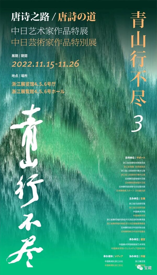 2022年是中日邦交正常化50周年,也是浙江省与日本静冈县缔结友好省县关系40周年。11月17日,作为纪念浙江省与静冈县结好40周年的活动项目之一,“青山行不尽3:唐诗之路中日艺术家作品特展”在浙江展览馆开幕。