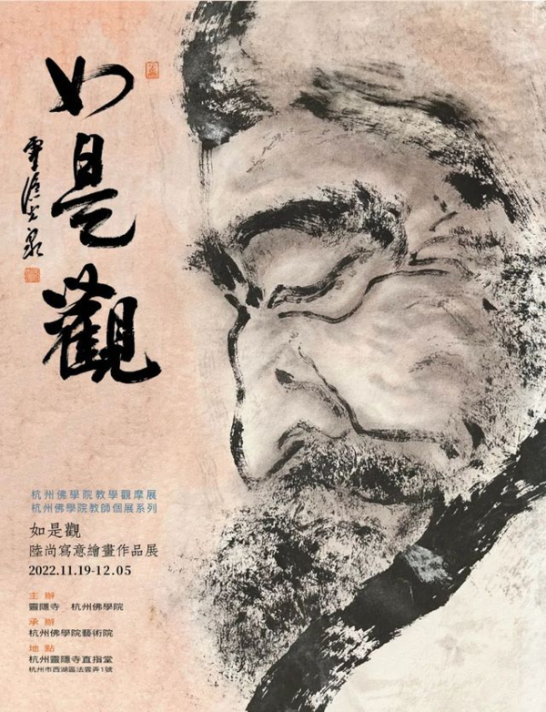 如是观——陆尚写意绘画作品展,于11月19日至12月05日在灵隐寺直指堂举办,展览分为中西学人肖像、达摩作品、禅宗题材、古代诗意图、课堂钩古等系列,展出其写意绘画精品100余幅。
