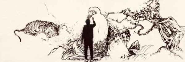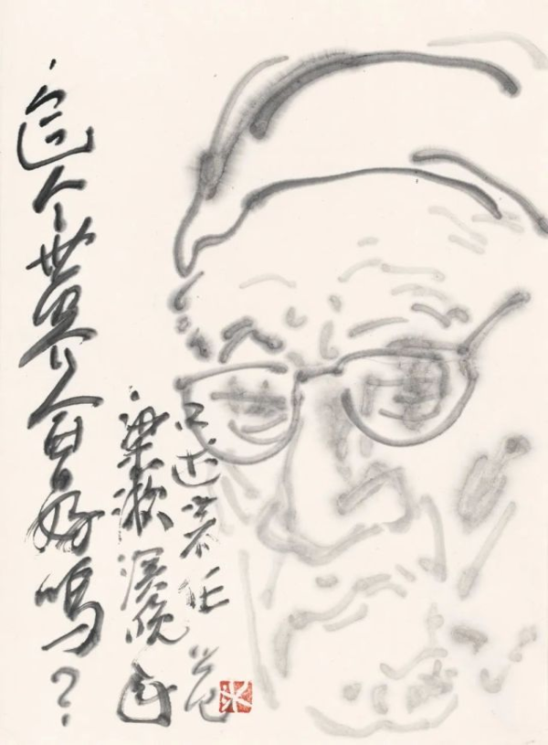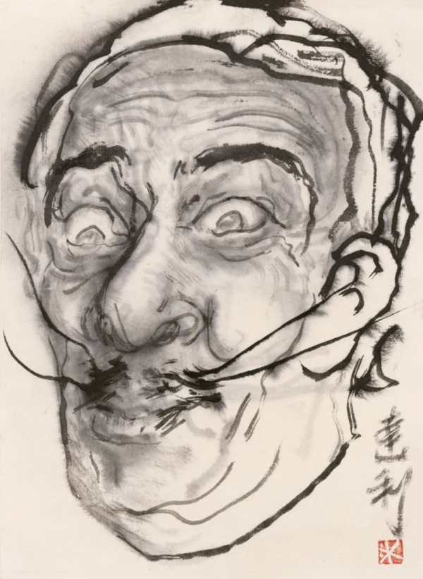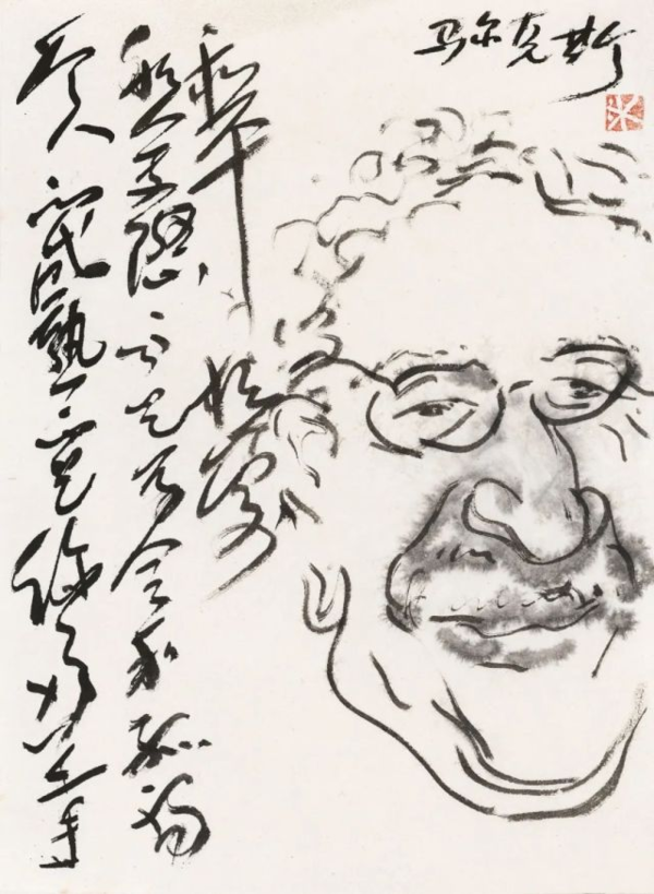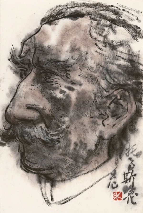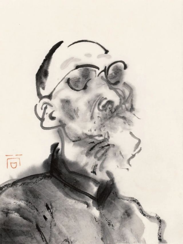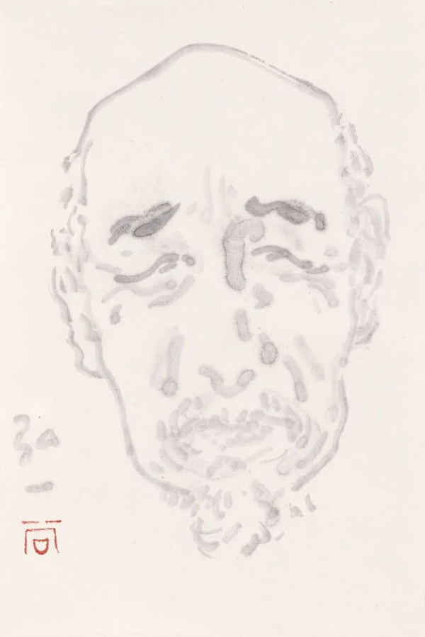 他也对世界名人追影写像,凡李叔同、鲁迅、黄宾虹、齐白石、徐志摩、叔本华、海明威、爱因斯坦、泰戈尔、毕加索、梵高等,多以简笔水墨,取其神态一瞥,形貌关其心性,往往失之毫厘,差之千里,而瞬间取神也是陆尚“废画三千”的结果。陆尚说;“哼哈之间,一呼一吸,佛祖拈花一笑,禅宗不立文字,周身所见,皆是修行,无非喜怒哀乐,吃喝拉撒,或许,还是撒泼的撒。”