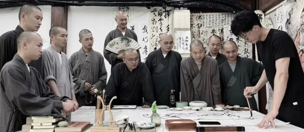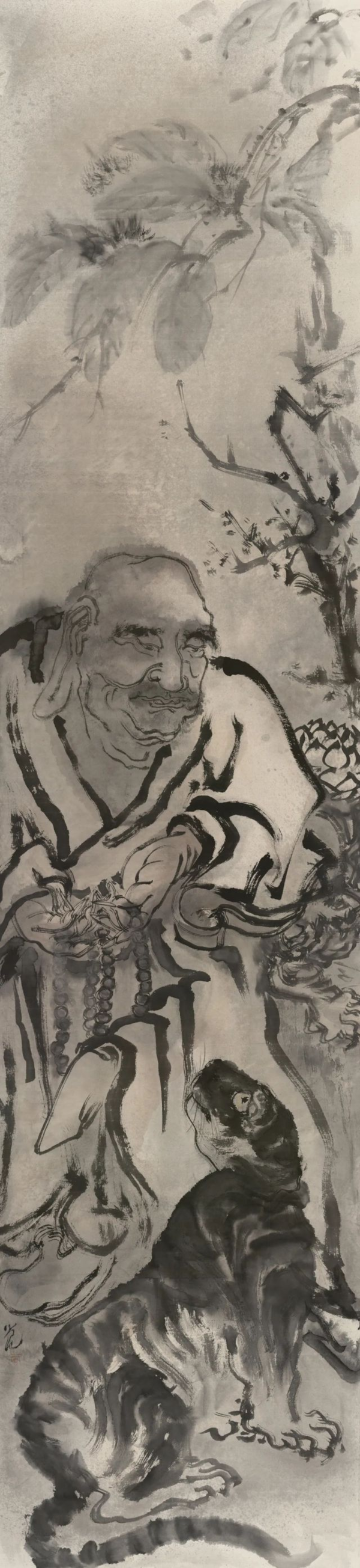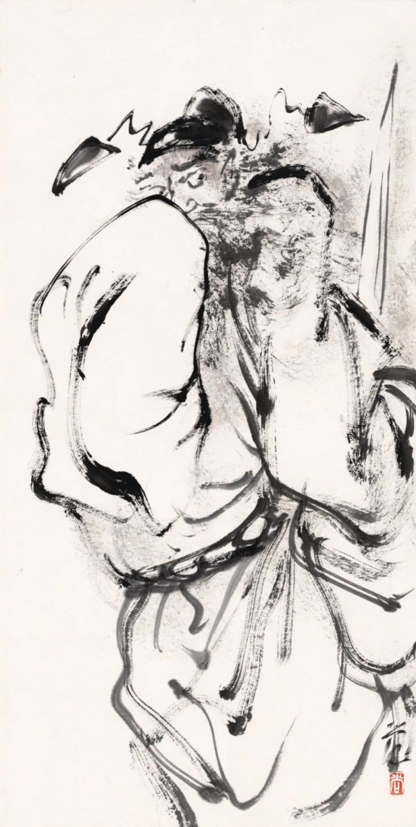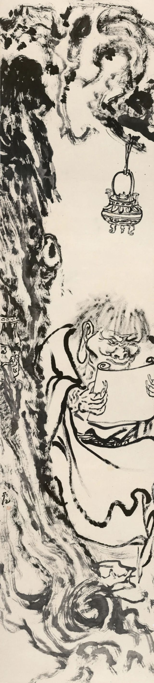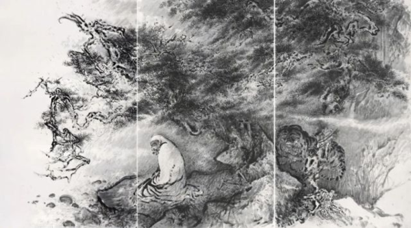 如今,陆尚在杭州佛学院教授传统写意人物画已有五年,禅宗题材作品亦反复观摹,文人画向来讲哲学,禅宗重思辨,悄然给画家带来启示,展呈十二幅尺八屏课堂钩古示范便是一次例证。