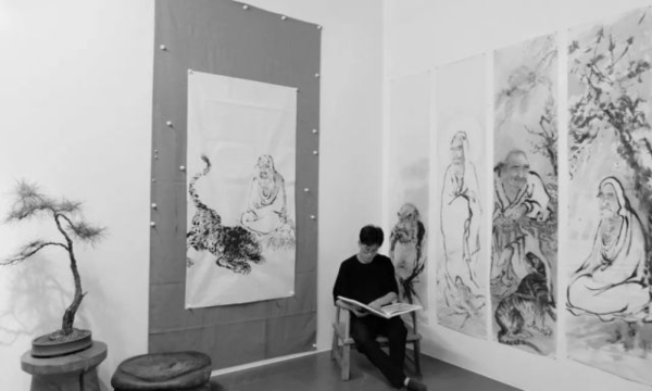 2008年,陆尚以专业第一名的成绩考入中国美术学院中国画系人物专业,如今攻读该专业的博士学位,十多年来一直执着写意绘画,尤其近年沉迷于肖像与传统写意人物画,肖像涉及中西文学、哲学、艺术、建筑、宗教等领域的学者文人,相较于2018年陆尚在恒庐美术馆举办的“儒门-近现代文人肖像个展”而言,这次展出的作品则多为水墨写意肖像。