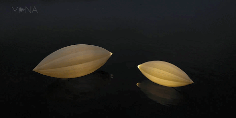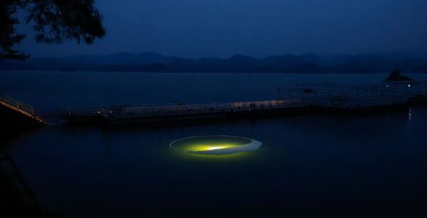 作者意欲将大自然的脉动艺术视觉化。作品由水面和水下两部分构成,水面圆形装置内放置适量可漂浮球体,浮球随着千岛湖的风向和水浪自由漂浮。水下设置灯光装置,使之配合昼夜与天气变化,进而使作品借自然之力形象地模拟出月相的变化。