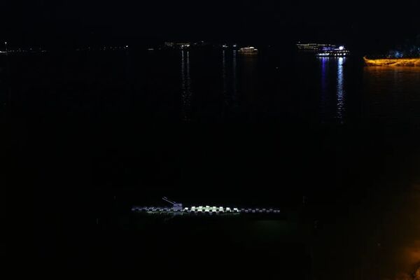 的?还是因为人们是想清理河岸,降低千岛湖的水位?通过蓝色的灯光,我们想展示岛屿的美丽,同样,我们想给水位的降低画上一个问号……