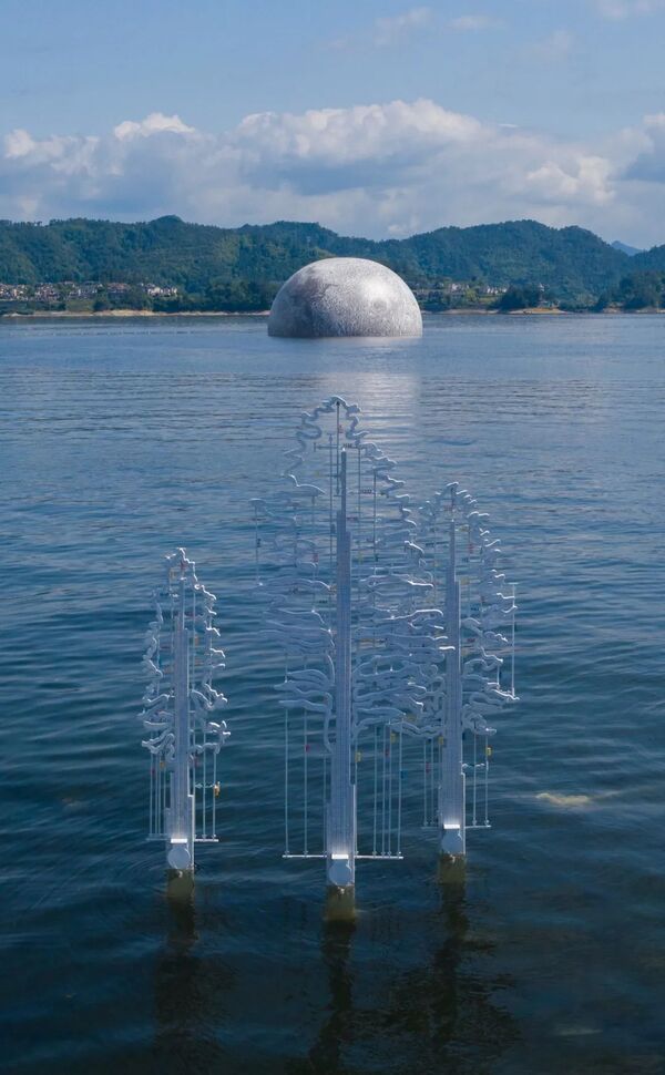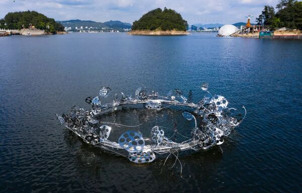 其中有1/4的作品结合了观众与水体的交互,在将公共艺术带入自然空间的同时,实现创作过程的生态化;有近1/3的作品涉及水底世界,以艺术语言融入千岛湖的历史文脉;还有1/3作品融入千岛湖的湖山景象。