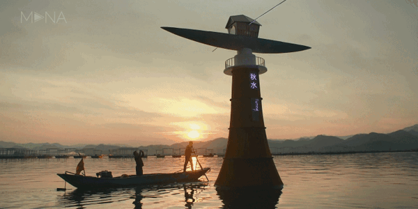 千岛湖碧水连天、烟云渺渺的景象,让我联想到“渔者”的话题以及庄子“秋水篇”种种意味深长的哲言;想到唐人张志和的“秋山入帘翠滴滴,野艇倚槛云依依”,那种“斜风细雨不须归”的境界;也意会着王勃那著名的“落霞与孤鹜齐飞,秋水共长天一色”的感怀。我这次参展的装置作品《渔者之境》,其创作的动因,一方面与前文言及的种种文化渊源和地缘特色相关,另一方面也是希望藉由装置艺术在某种特定场域的公共性、在地性,重温经典与当下交会的意义。同时就形式而言,旨在传达一种动静间的修行体验与内外通达的观念意趣,希望由此生成并触发更多有意义的超越视觉的想象和话题。