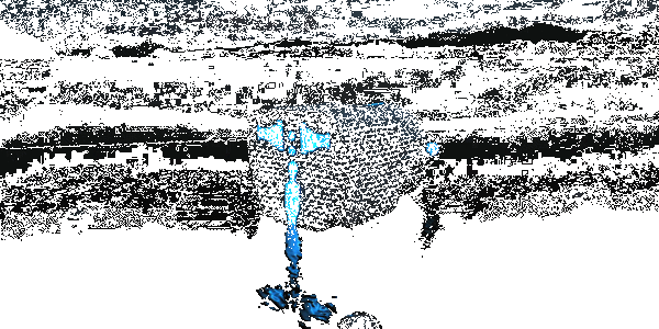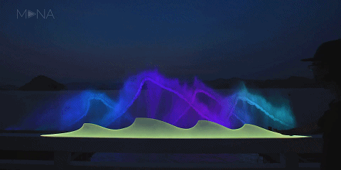 水位的降低通过蓝色的光线展示。这些蓝色的线条围绕着岛屿环形展开,高度上完美间隔,将水的厚度具像化。