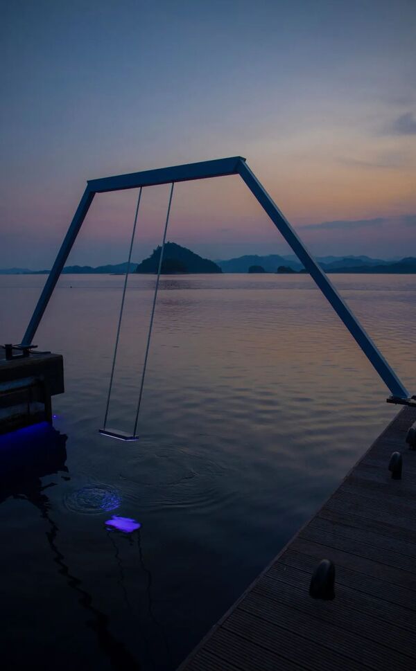 宁静的湖面上,当有访客进入最佳观看区域时,摇晃的秋千掀起阵阵涟漪......