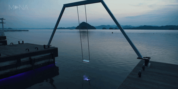但秋千实际没有触碰到水面。光本无形,却生涟漪。作品通过光与水的互动,使人感受光之形象。