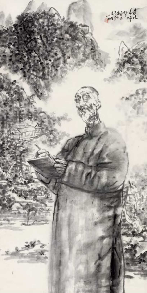 吴山明先生的水墨人物画充满了深切的人文关怀。无论是为文化先贤造像还是为现实人物写照,他都注重刻划人的精神风貌,塑造生命的光彩气象,在浓淡干湿变化丰富的笔墨中把中国画人物画传统中的“传神”演绎为浸染了精神关切的“写神”。