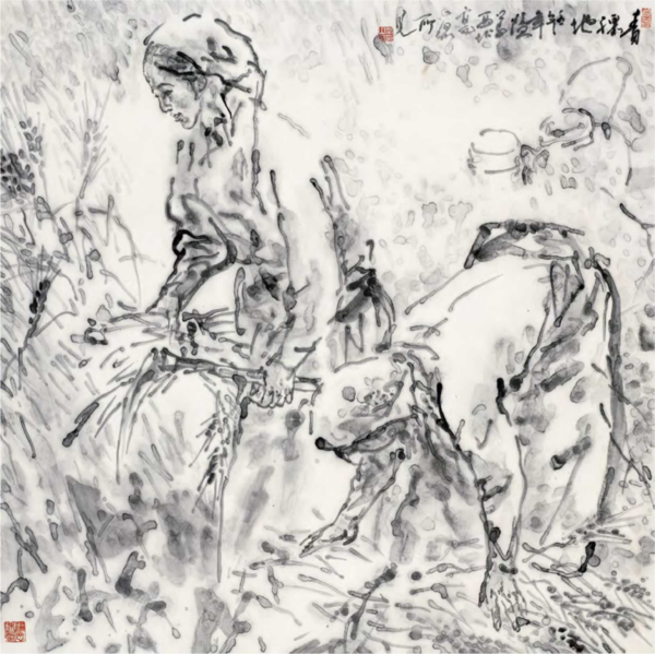 我觉得要讲他的特点,第一是他的水渍法,从形式上来讲宿墨是很突出的特点,丰富了中国绘画的语言样式。从另外一个角度来讲,体现出他这一代人的创新意识。这个很难得,不是简单承袭徐—蒋体系,他在语言上做了一些探索,但是保留了很多徐—蒋体系写实主义创作方法的优良传统,和生活贴得很近。水墨的本体语言这个话题近年来大家谈得比较多,因为受形的限制,水墨语言自身的东西发挥得少一点,这肯定也是留给我们这一代人用功的地方。吴老师对我们这一代人有很重要的启发意义,他长我们一代,但当时不满足于既有的现实主义的创作手法,也不满足于当时的语言样式,开始在语言上做一些新的探索,对我们的启发非常大。他搞宿墨很早,当时很多人不理解,感觉削弱了造型的深刻性,显然这种误解在当下看来是站不住脚的,因为绘画不能简单地理解,造型也不能简单地理解,造型更多的是一种意味,这种意味能传达出情绪,这是很重要的。我觉得吴山明很早地就意识到这些问题,在徐—蒋体系这根轴脉上比较早地进行语言的探索。我认为他的宿墨不仅是形成了非常个性化的风格,同时对我们这一代人都有很重要的启示意义。