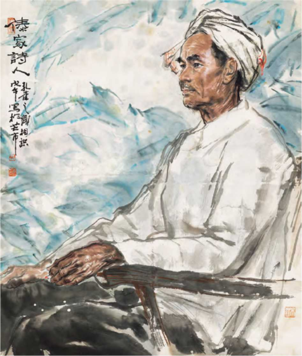 作为艺术家,他继承李震坚、周昌谷、方增先等浙派人物画大师的学术脉络,扎根传统,深入生活,为国人写照,为时代传神。他对中国画的本体语言进行了半个多世纪年的深度探索,以别开生面的笔墨实验,创造了独具特色的艺术面貌,为当代人物画开拓出一片新的领地。