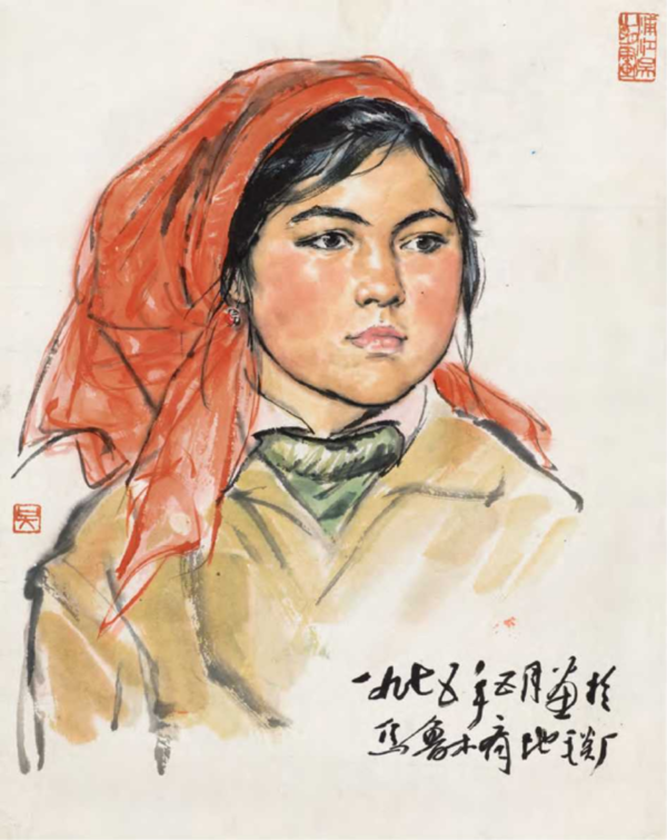 吴山明 新疆姑娘 纸本设色43cm × 35cm 1975年