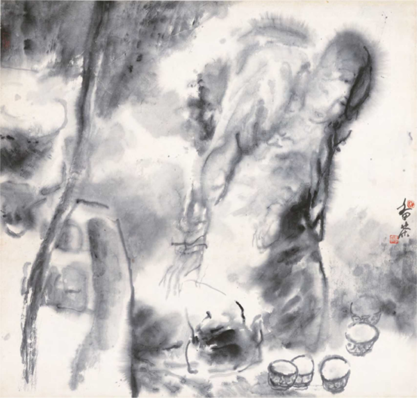 吴山明 备茶 纸本水墨96cm × 96cm 1994年