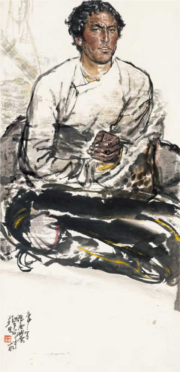 还有一点,对于一个人物画家来说,画普通的人当然要讲笔墨,画现代人也要讲笔墨,为大众服务也要讲笔墨,所以要讲笔性、笔韵、笔意,还要加宿墨。他跟我说过他用最好的墨来蒸制,一点渣子都不要,非常纯净高雅的一种宿墨,以此形成了个人风格。也就是说现实主义也好,为人民大众造像也好,也要讲笔墨,也要讲形式美,使得艺术能站得住。