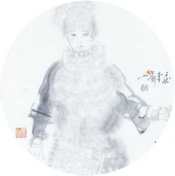 吴山明 贵州女 纸本水墨 直径33cm 2011年