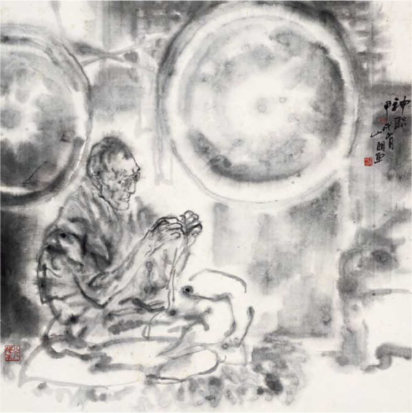 吴山明 神职 纸本水墨91cm × 91cm 1994年