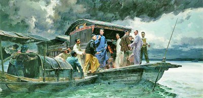 十月革命一声炮响,给中国送来了马克思列宁主义,给正在苦苦探求救国救民道路的中国先进分子指明了方向,中国共产党应运而生。这深刻改变了中国人民和中华民族的前途和命运。《启航——中共一大会议》的画面中,毛泽东、董必武、何叔衡等13位一大代表正在登船,压顶的乌云意味着山雨欲来,也暗喻了当时黑暗的社会环境,而远处的曙光,又如利刃一般划开阴沉的天空,预示着革命的胜利。紧接着,《南昌起义》《古田光辉染层林》《彝海结盟》《平型关大捷》《辽沈战役·攻克锦州》《淮海大捷》等经典作品,让观众重温了一幕幕重大革命历史事件,共同绘就出党团结带领中国人民开天辟地,经历艰难探索和浴血奋战,完成建国大业的史诗画卷。