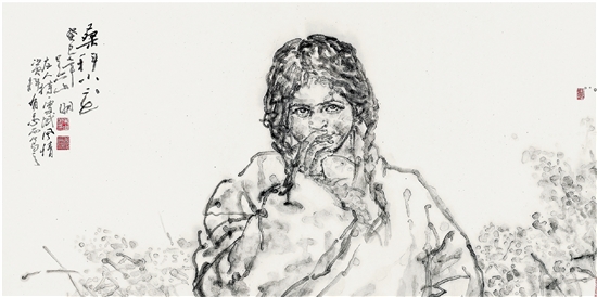 虽然之前,我未曾与吴山明老师见过面,然而,我在中央民族大学美术学院学习期间,浙派人物画在北京中国美术馆展出,引起极大的反响。其中,吴山明老师画的“西藏行”一组毛笔人物速写,大家都非常喜欢。那阵子称赞和议论吴山明成了民族学院绘画系师生挂在嘴边的话题。在谈论中,见过吴山明老师的人把他的形象、特点做了描述。