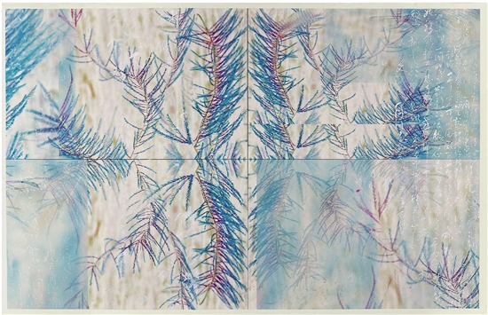 新作最早的雏形是我拍摄的松树,但成品已经看不到松树了,因为我对影像做了后期处理,根据内心的感受调色,并且用了一种反相的色调,形成非常强烈的互补。