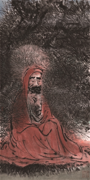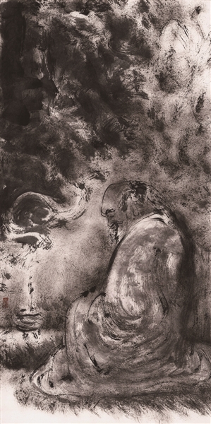 陆尚笔下的达摩,笔畅墨酣,带有传统的写意精神。当然,他在这种传统样式中仍具有现代意识和个人的表达。“罗汉”作为传统中国画的题材流传于世。后来的画者在继承和发展中赋予新元素尤其重要。