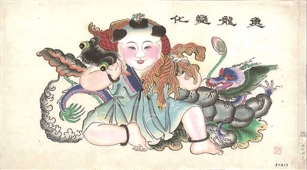 年画是中国特有的一种民间绘画载体,也是中国社会的历史、生活、信仰和风俗的反映,始于古代的“门神画”。在漫长的岁月里,在满足百姓生活与审美需求的基础上衍生并形成的一种具有中国民间特殊象征性的装饰艺术。年画大都用于新年时张贴以装饰环境,含有祝福新年吉祥喜庆之意。年画有着鲜明的地域特征和符号意义,在传统生活中通俗而广泛,蕴含着人们对生活“福祥喜瑞”的愿望,体现着人民群众的情感寄托。年画的题材包罗万象,堪称一部民间生活百科全书,在内容上可分为:神仙与吉祥物、世俗生活、娃娃美人、故事传说。“南桃北柳”之说,南即苏州桃花坞年画,北即天津杨柳青年画,是中国年画的主流。