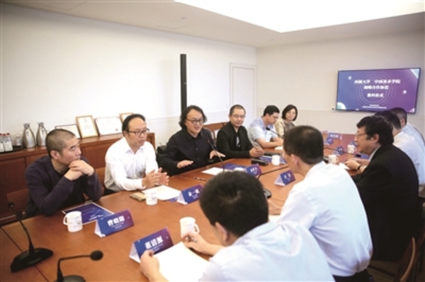 西湖大学校长施一公则认为,艺术与科学彼此互为启蒙、互相启迪。科学家和艺术家的共同特点都是在创造新事物,科学与艺术交融,能产生更好的科学和更好的艺术。“未来,西湖大学与中国美术学院将在学科建设、科研创作、专业实验室建设到人才培养模式方面交流互通。本学期,中国美术学院在西湖大学的‘中国美术史’课程,即将面向全体博士生开放授课。我认为,懂艺术的科学家和懂科学的艺术家,通过思想碰撞、启发,也许可以创造一个新的领域,是我们的想象力所无法到达的地方。今天战略合作协议的签署更是一个新起点,期待两校共同努力敞开合作,打开一个新的世界,擦出科学与艺术的新火花。”