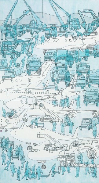 抗疫主题也是今年广州美术学院中国画学院毕业创作的重点。人物画、山水画和花鸟画都通过这一主题实现了自身的突破,传统的画科分类不知不觉中被打破,保留下来的是各自不同的语言体系和试图拓展画科形式的探索痕迹。抗疫英雄们的平凡身影、建设工地的火热场面,所有间接获得的图景和直接体验到的感受,在不同画科语言和形式的结合之下得到了充分的表现。