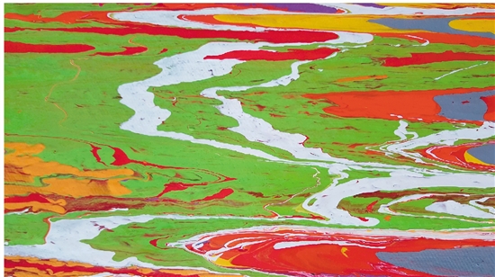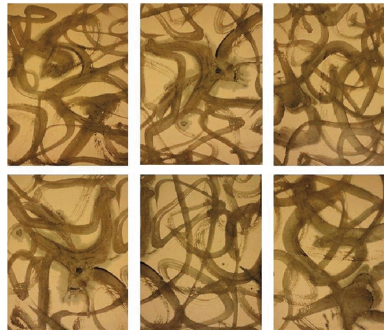 选择“线场”表达艺术审美和艺术表达的代表,美国当代艺术家波洛克提供了鲜明的案例,他是一位可以作为比较来审视以线条为主体的抽象艺术群体的代表。他通过滴流技术完成线条表现,去寻找抽象的表达方式,着重把内在的自我通过复杂的线条表现出来。那些重复的、混乱的、再现的线条,通过滴画技法,和鲜明的色彩,形成了别具特色、独树一帜的抽象艺术,影响了当代抽象艺术的进展,也提供了可资借鉴的范本。徐庆华数次赴美,在纽约美术机构考察学习研究波洛克“线场”抽象艺术,作为创作的“参照”和寻找突围的“基点”,良苦用心可见一斑。