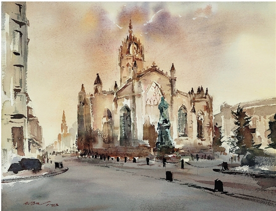 在英国留学并攻读博士学位的近十年里,他对英国水彩画大师格尔丁、科特曼、透纳的水彩画作了深入的研究。由于英国多雾潮湿的气候环境和诡奇多变的光色十分有利于水彩的从容衔接,非常适宜于水彩画工具和材料的充分发挥,使水彩画逐渐成为英国画家喜欢的一个画种。18、19世纪的欧洲水彩画大家几乎都出自英国。在这种得天独厚的学习环境中,水彩画艺术成为安滨教授的主攻方向之一。格尔丁灵动的笔法、透明的色彩、现场的即兴感和粗犷清新的画面效果,科特曼的画面形式感、对自然场景的整理技巧,透纳在创作时表现出的激情、快速动感的笔法,都成为他学习、吸收的重要内容。