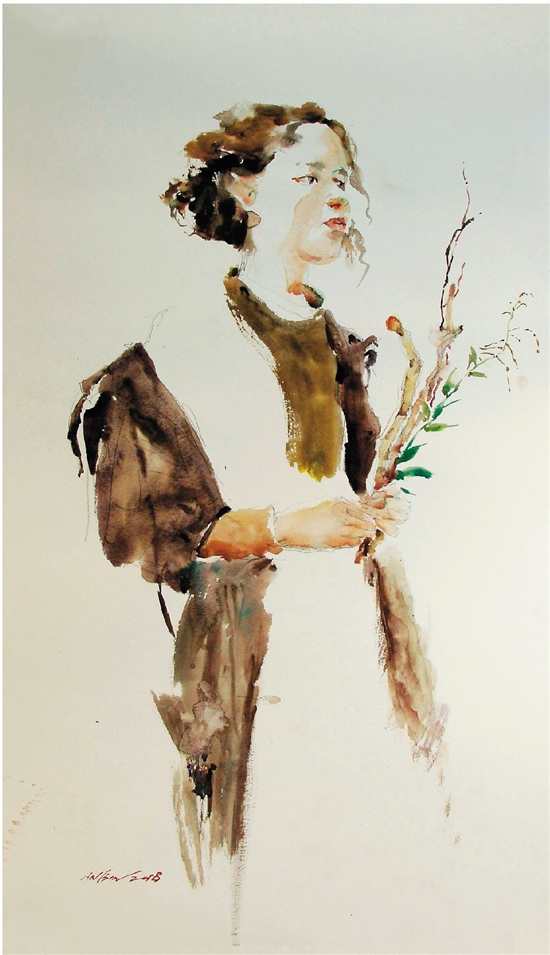 总之,安滨教授以自己对艺术的真诚和探索者的勇气在东西交融的文化语境中寻找适合时代、又与自己的艺术趣味相合的表现手法,以诗意般的情怀探求着水彩画艺术向更高更深的方向迈进。