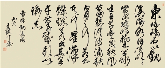 就书法而言,我觉得他的草书具备了一种节奏感,章法还是不错的,当然也还可以有更多的进步。我相信黄镇中将来取得的成绩不光是书法好,画也会更好。