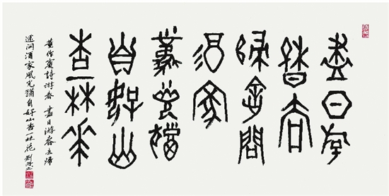 许江认为,刘江先生的篆书,笔力酣强,结体挺拔,于苍劲中葆存生活的朴厚之气。他的篆刻,沉厚广大,苍酋拙劲,磨炼汉印之美,在方寸之间塑造扛鼎之力。刘江先生还多次慷慨捐赠代表之作,其中较大规模的捐赠有2009年的书法代表作30件、篆刻代表作30件。2017年又向学院捐赠200方印章。捐赠作品涵盖刘江先生各个时期的代表作品,从数量到质量都具有很高的艺术价值和历史价值。