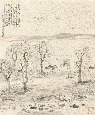 在人们的印象里,国画与书法是古老中国传统文化的一部分。从事书画的这群人,应该是文质彬彬、儒雅而安静的,与不断的奔跑、跳跃,充满活力,身板硬朗魁伟篮球运动很难作对接联系。前者静若处子,而后者动若脱兔。事实上,这群人在画室让人见到了前者,在球场上则可见后者。