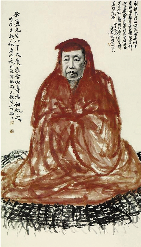 ▼诸闻韵、潘天寿为吴昌硕作八十寿像轴 1923年 浙江省博物馆藏