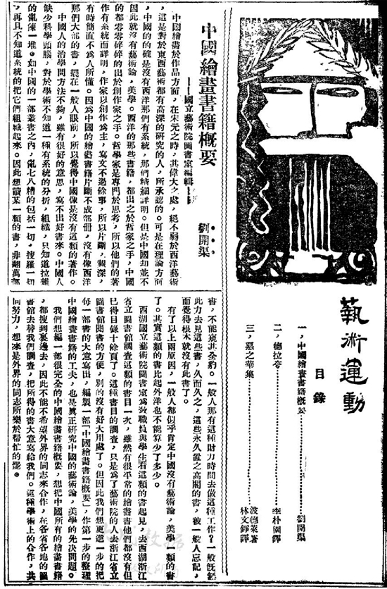1928年中央日报特刊《艺术运动》第八期刊登刘开渠《中国绘画书籍概要》