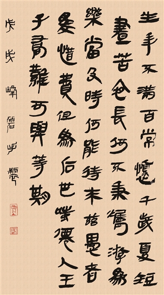 与峰磊相识已十年有余,他为人简朴,处事简洁,时间都投入在临帖、创作和读书上,因而能屡屡斩获书坛大奖,其书法创作和理论研究成果亦时常见诸报刊。峰磊的书法是经过美院严格训练和系统学习,真草隶篆行五体兼擅。刚认识的时候,他于秦汉碑刻用功最勤,如《峄山碑》、《礼器碑》、《张迁碑》等,又借鉴清人篆隶墨迹。他把篆隶写得雄浑劲健,朴厚古拙。后在首届浙江省新人书法展上获得最高奖的行书,峰磊把碑与帖进行了融合,写得潇洒飘逸,委婉含蓄。最近几年,峰磊把学书的重心放在了秦汉简牍帛书的研习上,这是他对秦汉经典碑刻广泛吸取后,又对秦汉民间书法的深入挖掘,增强了篆隶的书写性,把篆隶书写得轻松自然,落落大方。