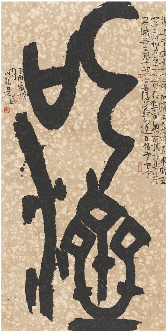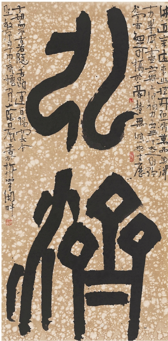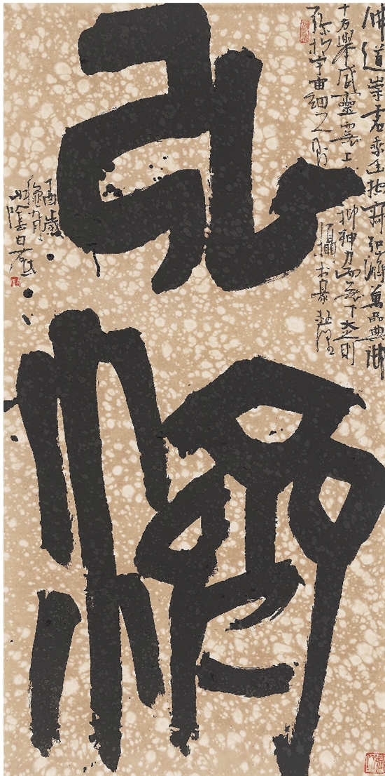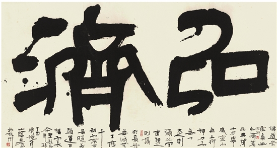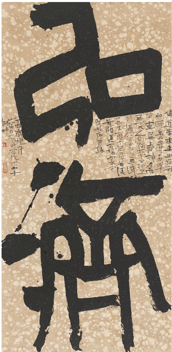 当然,打破字体界限前提需章法布局协调,否则会导致整幅作品内息不调。而白砥用其“弘济”系列作品实践证明,在传统书法章法、布局变化极其有限的条件下,颠覆字体界限以求打破传统章法藩篱行之有效。