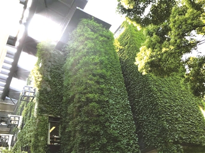 15年前,新美院在原址落成时,楼前花坛种下的爬山虎与凌霄,如今已经交织着爬上了高耸的楼顶,又经过一个月的春雨唤醒,犹如绿色瀑布从天而降,遮住这栋楼,连阳光似乎都变成了绿色的。