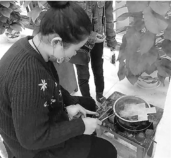 在手工艺术学院一楼的工作室里,摆放着各种金属材料加工的仪器,有学生正在把压好的铜片放在沸水里煮,洗掉表面的氧化物。