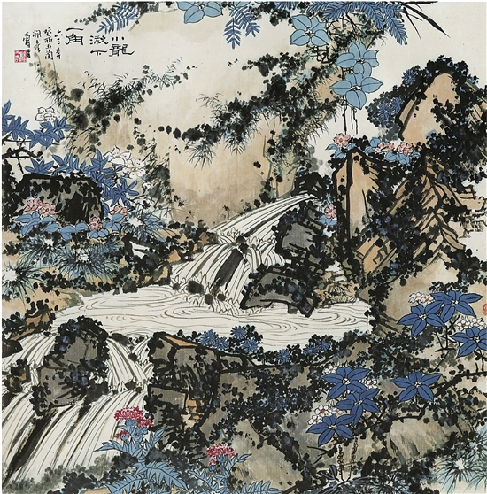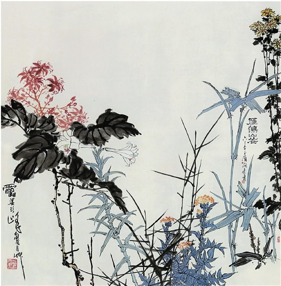 1949年中华人民共和国成立。素来不过问政治的潘天寿一改以往不屑于参加社会政治活动的习惯,开始参加一些政治学习和讨论。他随师生下乡参加劳动,创作了《踊跃争缴农业税》《种瓜度春荒》等表现农村新气象的人物画作品,为以后国画人物画教学提供了思路。不久绘画系又分成彩墨画、油画、版画三科,中国画名称由彩墨画所代替。彩墨画系极少教授传统技法,对传统绘画的忽视和鄙薄继续充斥着美院。潘天寿等老教授均被排除在教学工作外,只让他们在学校成立的民族美术研究室整理民族艺术遗产。虽然没有机会直接参与教学,但潘天寿一刻都未停止过思考中国画的改革和创新,觉得山水、花鸟画也要在题材内容上寻找突破口,从古人那里学技法还不够,还要直接面向生活,直接从自然中写生。他和同事们去了浙东名胜雁荡山,那奇特的山势激发了他的创作灵感。回杭州后,他接连创作了《灵岩涧一角》《梅雨初晴》《小龙湫下一角》等作品。潘天寿用山水花卉结合的方式创作的《灵岩涧一角》,既不同于鸟瞰式的远景山水,又不同于传统的折枝花卉,让人耳目一新。这幅画成为他艺术道路上的里程碑,使他的艺术又跃上新的高峰。