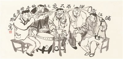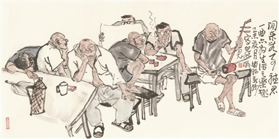 在笔墨上他选择了以写为特征的构成法则,粗犷而不经意的线条,着墨浅淡、笔触荒逸,自由自在的不带刻画的构成态度,不失当代意味,又体现了传统意蕴,真实地丰富了社会风情,把人们的生存空间转换为一种审美上的崇尚和关怀。表达了他内心的情结,那些褪色的故事和过往记忆中的文化积淀与艺术提炼。他让我们想起了艺术的新、艺术的美,真的绝不仅仅存在于理想,不仅仅存在于先进。艺术其实没有先进与落后的分别,艺术只有美与真情。