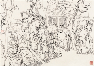 狮子林速写之一 45cm×64cm 纸本水墨 2014年
